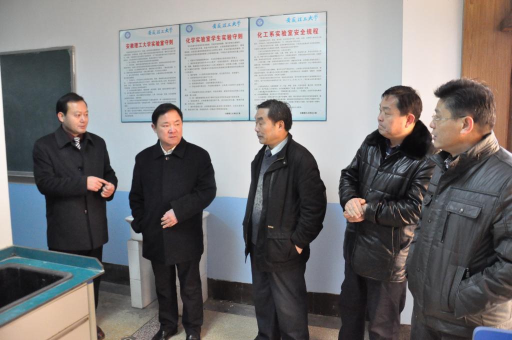 12月21日上午,副校长刘泽功一行赴新澳门六合彩内部资料 检查指导化学实验室安全工作,教务处处长宫能平、实验室与设备管理处处长苏嘉银、学生处处长田中良、校团委书记王先江、校党政办公室副主任兼校友办主任方运纪陪同检查。