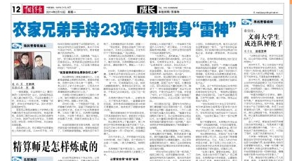 《中国青年报》报道新澳门六合彩内部资料 “专利兄弟”创新发明的先进事迹