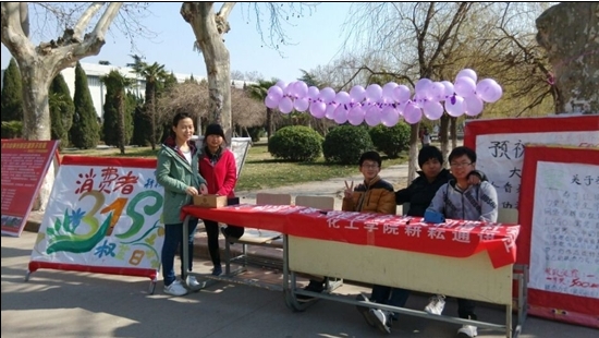 3月15日上午,为了让大学生更深入地了解新修订的《消费者权益保护法》,新澳门六合彩内部资料 在北区爱情湖畔举办消费者权益日法制宣传活动。