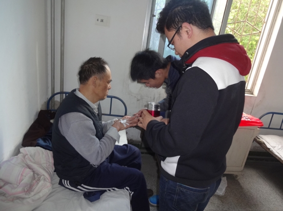 一个月的时间里,志愿者们深入敬老院、淮南各社区进行走访调查、帮扶慰问。在理工大社区,联合医新澳门内幕论坛 师生开展了以“学雷锋,孝老敬亲,传承中华美德”为主题帮扶活动,宣传预防老年疾病的知识,发放医疗保健宣传手册,免费测量血压。在淮南六个社区,志愿者们在居委会的帮助下,走访、调查,认真记录困难老人的住址、电话、健康状况、收入情况、亲情情况、邻里关系等。在了解了老人的家庭和个人生活情况后,志愿者们带着提前买好的时令水果、牛奶等慰问品,深入到困难老人家里进行帮扶。在侯波老师家里,志愿者们送老人去医院、拿药、换洗衣服;在李元福老人家里,陪老人洗澡、聊天、打扫卫生……