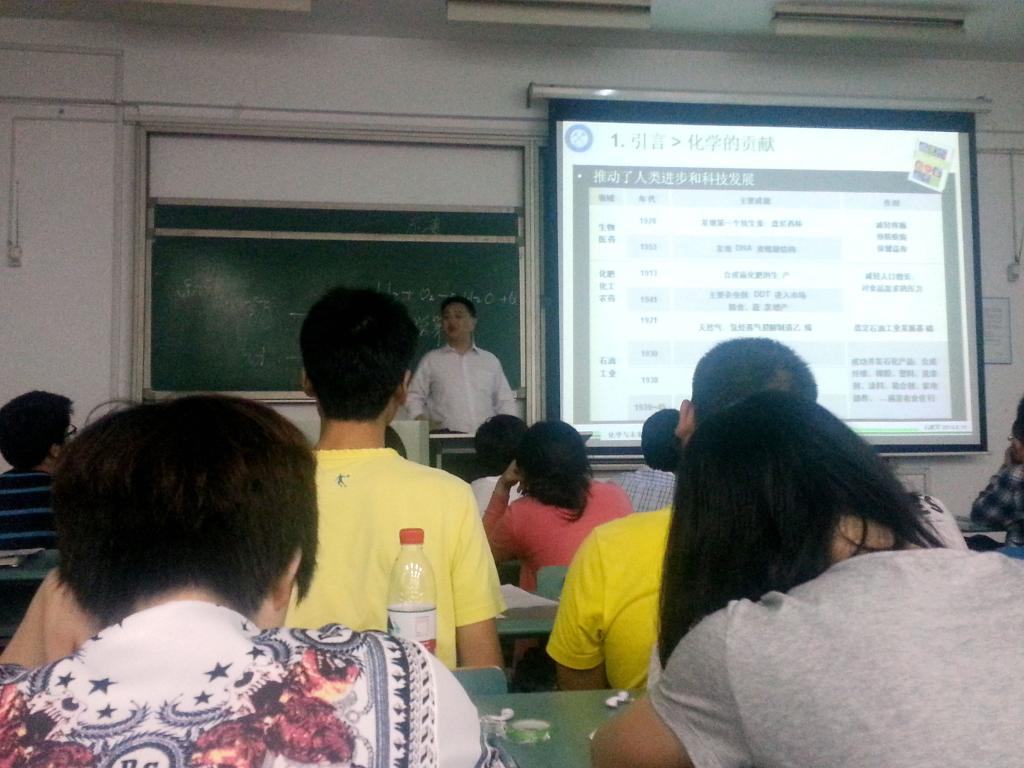 石建军教授的报告题目是“化学与未来——新能源与绿色化学”,从专业角度对新能源与化学知识进行了阐述。侧重讲解绿色化学的种种优势和未来广阔的发展前景,最后以自己的成长经历现身说法,鼓励同学们认真学习化学,用知识来报效祖国。