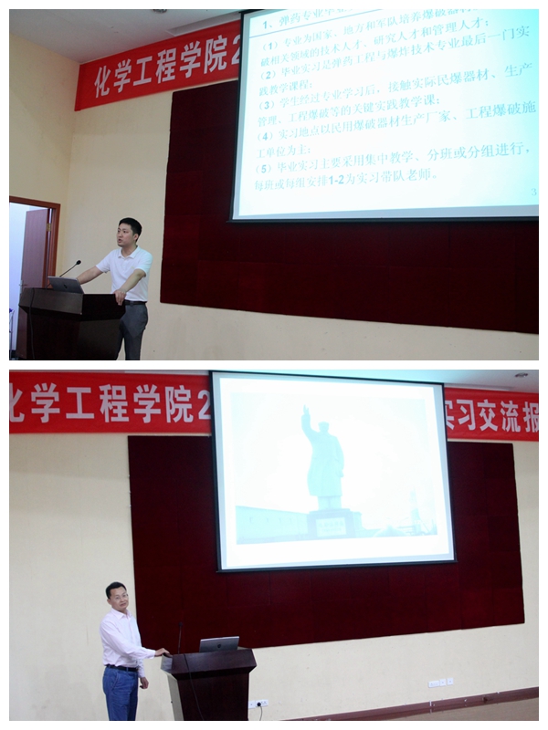 弹药工程与爆炸技术专业彭世龙等7名同学分别就本班级实习情况作了详细介绍,大家就现场学习、实践操作、问题思考作了一一汇报,并就实习的收获同现场师生分享经验,对实习中存在的一些问题作了反映。