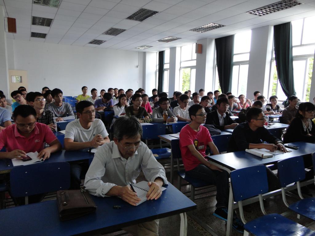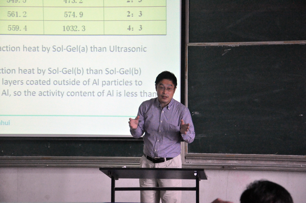 上午,研究生学术报告在新附2201教室举行,会上,他就纳米材料与微纳米结构材料的尺度区别、纳米粒子含能材料、纳米结构复合薄膜含能材料、纳米线复合含能材料、纳米柱复合含能材料、纳米结构内嵌含能材料、含能器件制造新工艺等方面进行介绍,内容详实、理论性强、很有前瞻性。同日下午,在新教1306教室,就“火工品发展现状与趋势”一题与本科生进行交流,报告中,他对火工品基本概念、发展历史、国内火工品发展现状、航天火工品发展状况、火工品发展趋势和方向等方面进行了介绍。