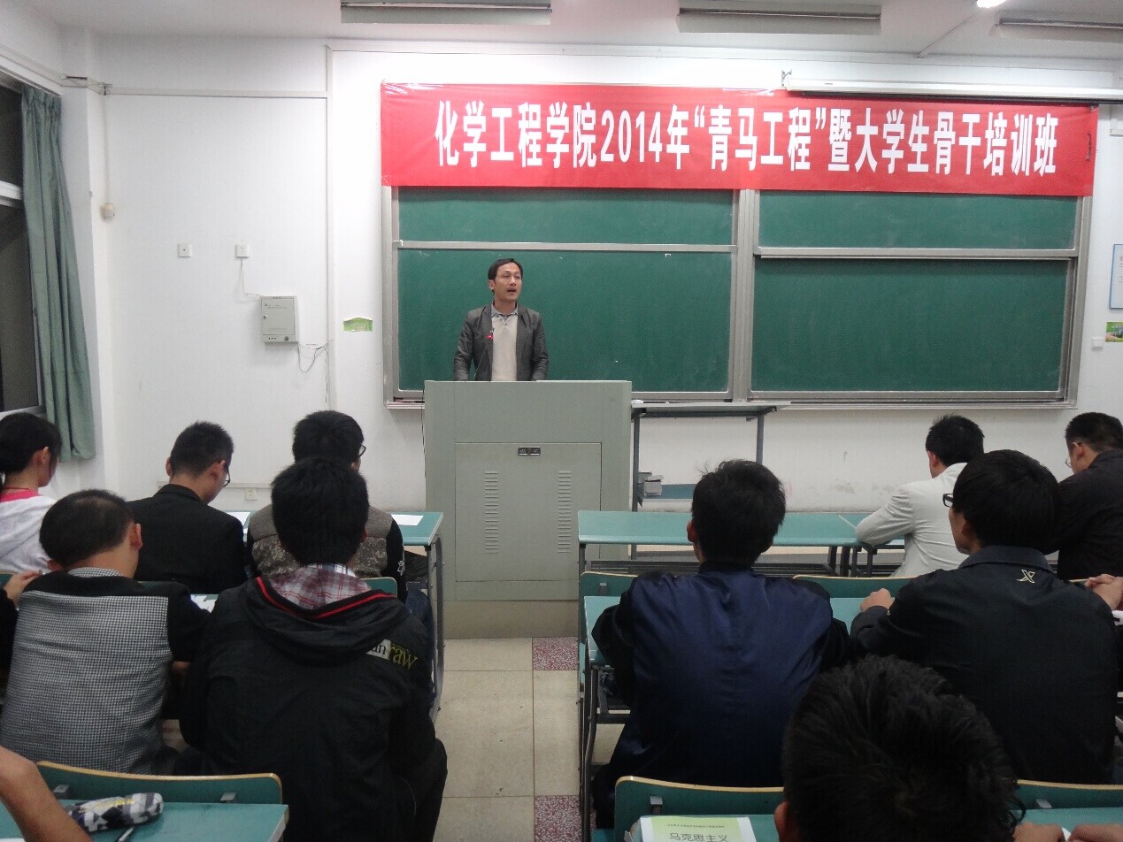 10月28日下午,新澳门六合彩内部资料 在北实205举办了2014年“青马工程”暨大学生骨干培训班开班仪式。院党委副书记李颖致开场辞,新澳门内幕论坛 团委书记曹秀军主持。