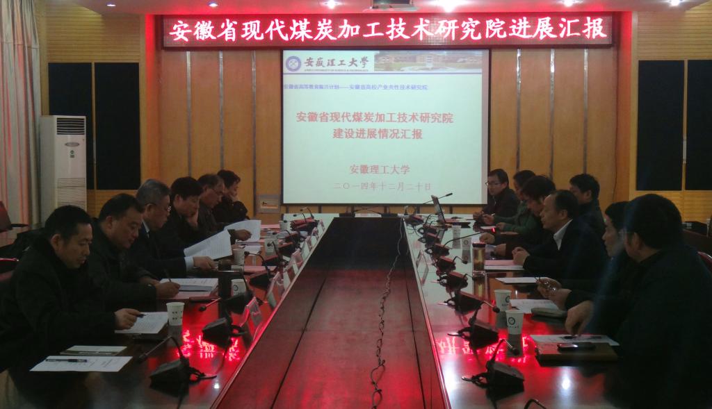 12月20日下午,学校组织召开了安徽省现代煤炭加工技术研究院阶段进展情况汇报会。邀请了安徽省重化工专家办公室主任李朝东、淮南市政协副主席、科学技术局局长吴健、合肥工业大学科学技术研究院副院长崔鹏、安徽工业大学学科建设处处长郑明东、江苏地质矿产设计研究院院长张谷春、淮南矿业集团潘一矿厂长王传金等6人组成专家组对研究院阶段进展情况进行检查,李朝东主任任专家组组长,安徽理工大学校长郭永存出席并主持了会议。