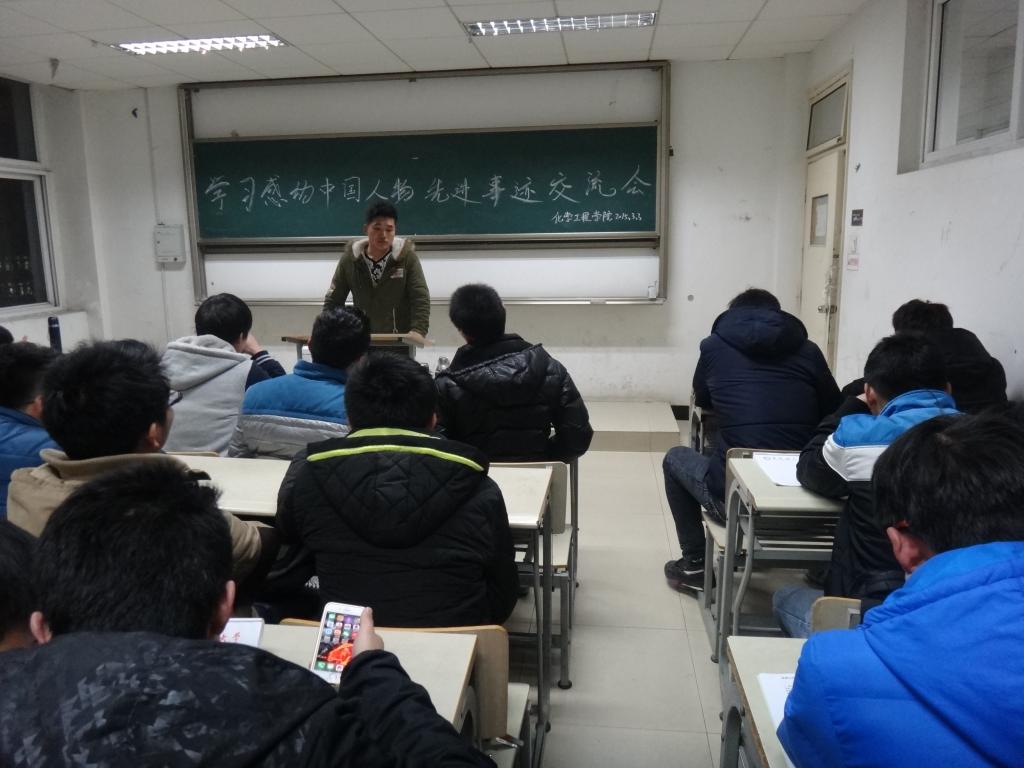 会上,同学们依次走上讲台,各自讲述了观看“感动中国人物”颁奖盛典的感悟与心得:带领科研团队实现氢弹研究突破的科学家于敏,默默捐款20余年从不留真名、成为一座城市精神坐标的普通市民张纪清,十几年如一日,无微不至照顾瘫痪父亲的孝女朱晓晖等10位人物的感人事迹、百折不挠的信念和甘于奉献的精神,正是对社会主义核心价值观的生动诠释,让同学们受到深刻的心灵洗礼。大家纷纷表示,要以身作则,身体力行,继承和发扬将这些先进人物的精神和品质。弹药14-5班韦峰同学说:“这些人物故事不断鞭策和鼓舞我要战胜困难,努力好好学习,积极奉献、热心助人、勇于弘扬正气。”