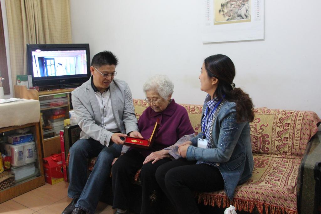 徐冬生、徐泽绵等来到师全智、杨琦霞、侴万禧三位老人家中,为他们送去油和米,表达节日的祝福和新澳门内幕论坛 的关怀。杨琦霞老人作为女游击战士,参加过泗洪游击战;师全智老人早年参加革命,为新中国建立做出了自己的奉献。他们小心翼翼地取出纪念勋章,向大家介绍了当年抗战情景,让在场的师生为之感动和敬佩。