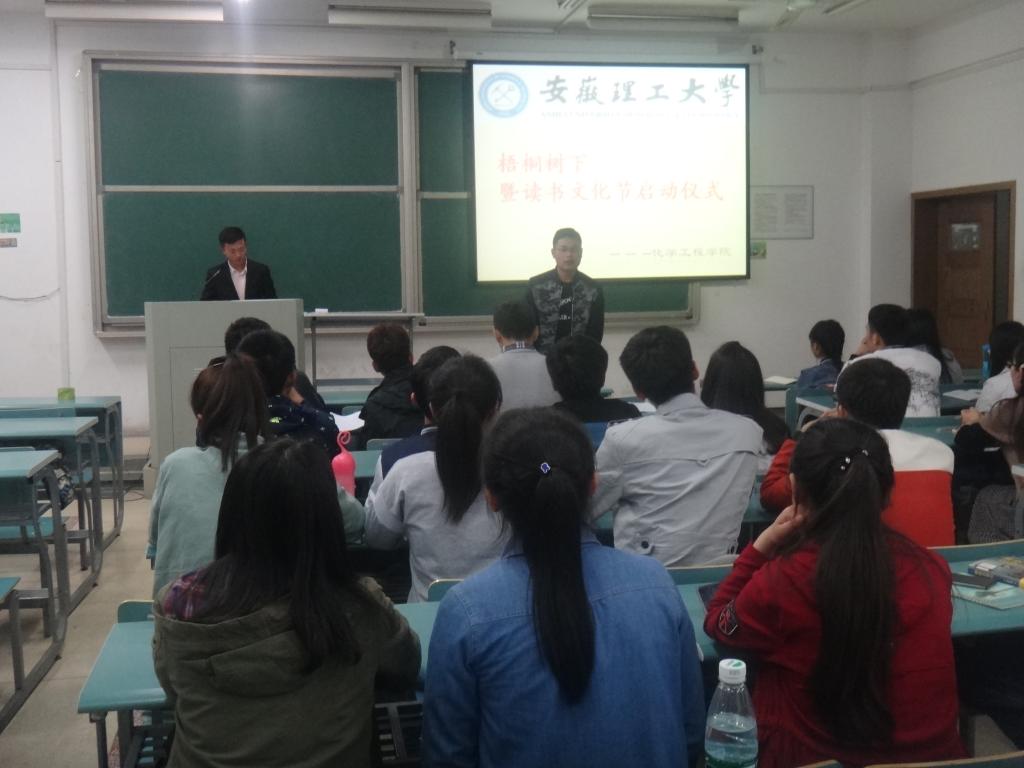 4月8日晚,在世界读书日来临之际,由校图书馆、新澳门六合彩内部资料 联合举办的第三届“梧桐树下”大学生读书文化节启动仪式在北实204教室举行。新澳门内幕论坛 团委副书记杨志华、读书节组委会成员50余人参加了启动式。
