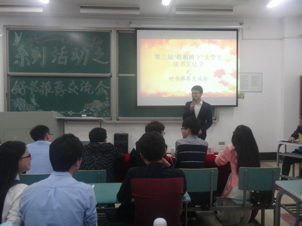 20名参赛选手参与的好书推荐交流会在北实204教室举行,推荐人配合着现场音乐,将个人感情融入到书的情节中,或激情澎湃、或低沉温婉地向大家讲述了《安娜卡列尼娜》、《明朝那些事儿》、《阿弥陀佛,么么哒》等作品的感人故事,畅谈自己的阅读体会和推荐理由,在分享中让听众与观众发生共鸣,让心灵得以启迪,修养得以提高。最后,经评委以打分形式认真推选,弹药15-3班李松林获一等奖,数媒15-1班王顺等2位同学获二等奖,自动化14-2班时美乐等3位同学获三等奖,地信14-1张宇洪等14位同学获优秀奖。