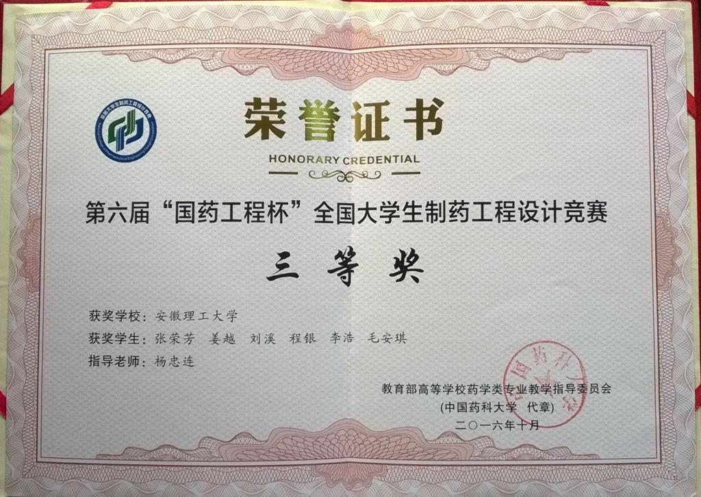 新澳门六合彩内部资料 学子喜获第六届全国大学生制药工程设计竞赛三等奖
