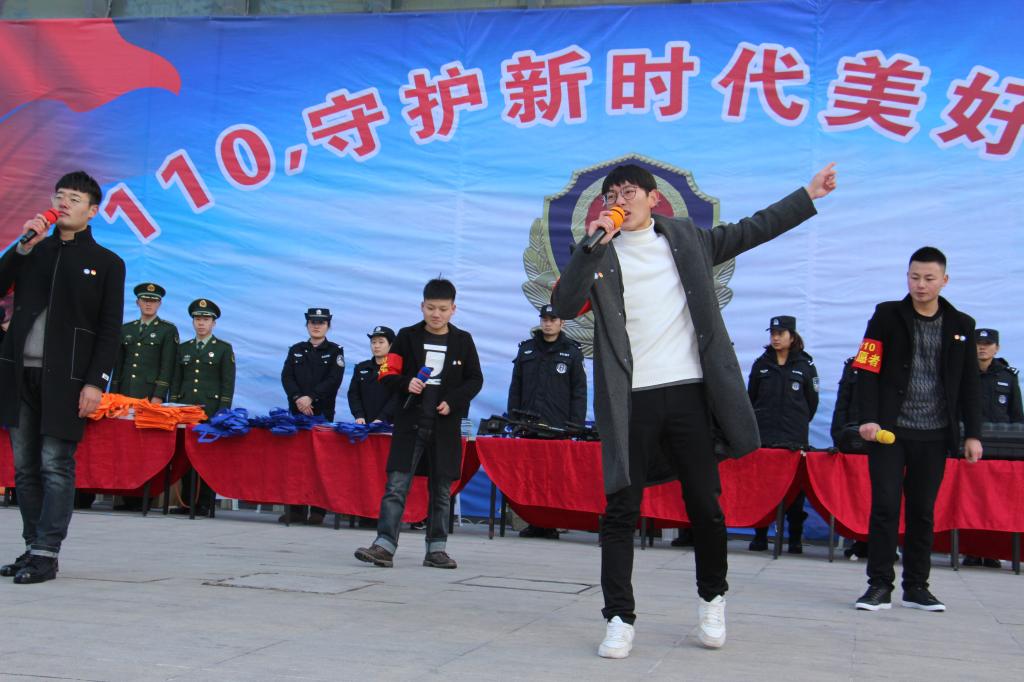 上午10点,宣传启动仪式开始,同学们现场为大家带来了一段精心准备的“警察说”rap,吸引了许多市民驻足观看,节目获得了市局领导和在场市民的高度赞扬。仪式结束后,志愿者在会场周围,为广大市民发放110宣传单,普及正确拨打110报警电话以及如何在特定环境下正确使用不同的方式报警等基本常识,同时提醒广大市民拨打110骚扰电话的严重危害。志愿者还宣传了春运安全、冬季防火、防盗、防燃气中毒、事故现场逃生、自救等自身安全防范,以及防电信诈骗等知识。