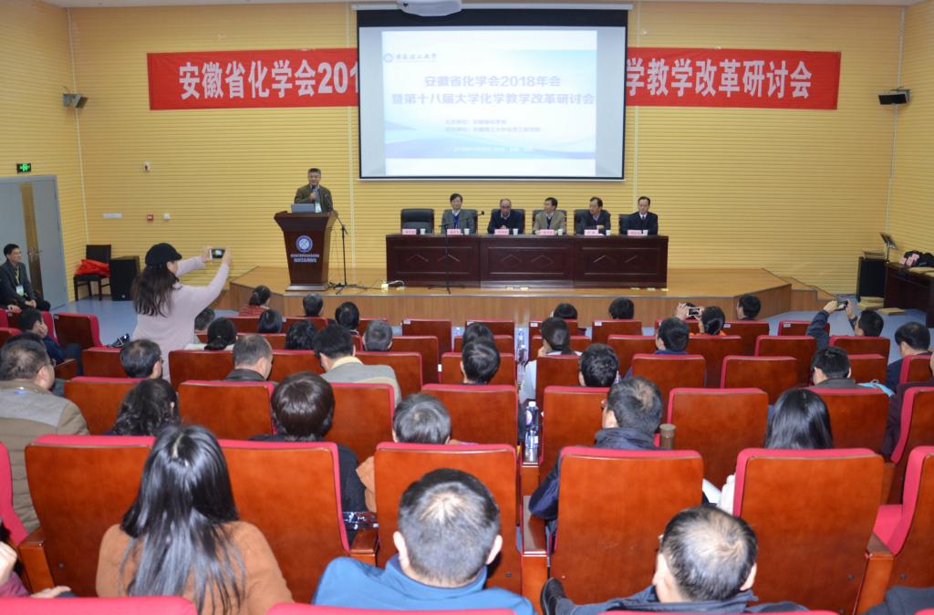 11月24日,安徽省化学会2018年会暨第十八届大学化学教学改革研讨会在我校举行,来自全省30余所高校化学化工相关专业教师及部分企业代表共200多人参会,大家围绕加强新时代化学化工本科教育教学工作及学科前沿问题展开研讨。会议由安徽省化学会主办,我校新澳门六合彩内部资料 承办。副校长郑明东教授出席会议并致辞。