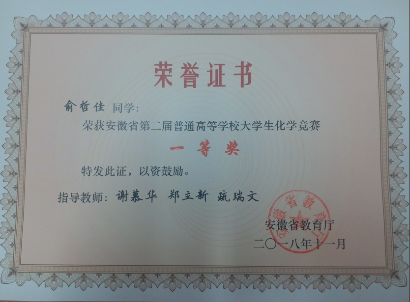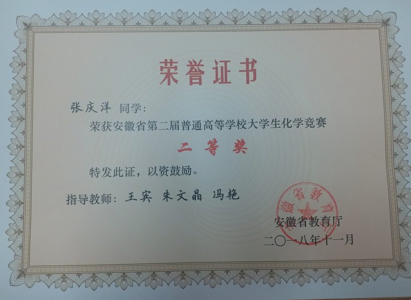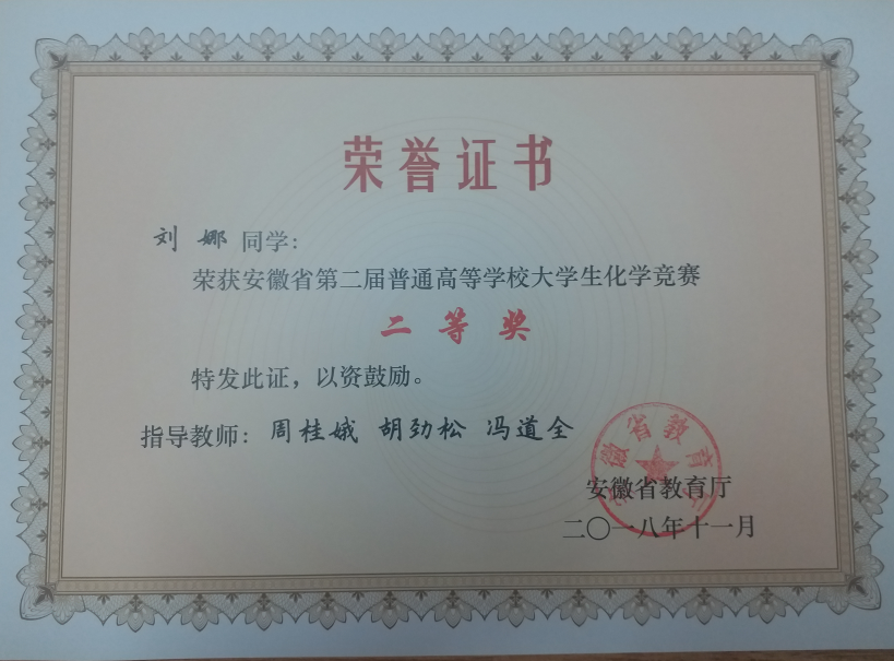 新澳门六合彩内部资料 学子在安徽省第二届普通高等学校大学生化学竞赛中获佳绩