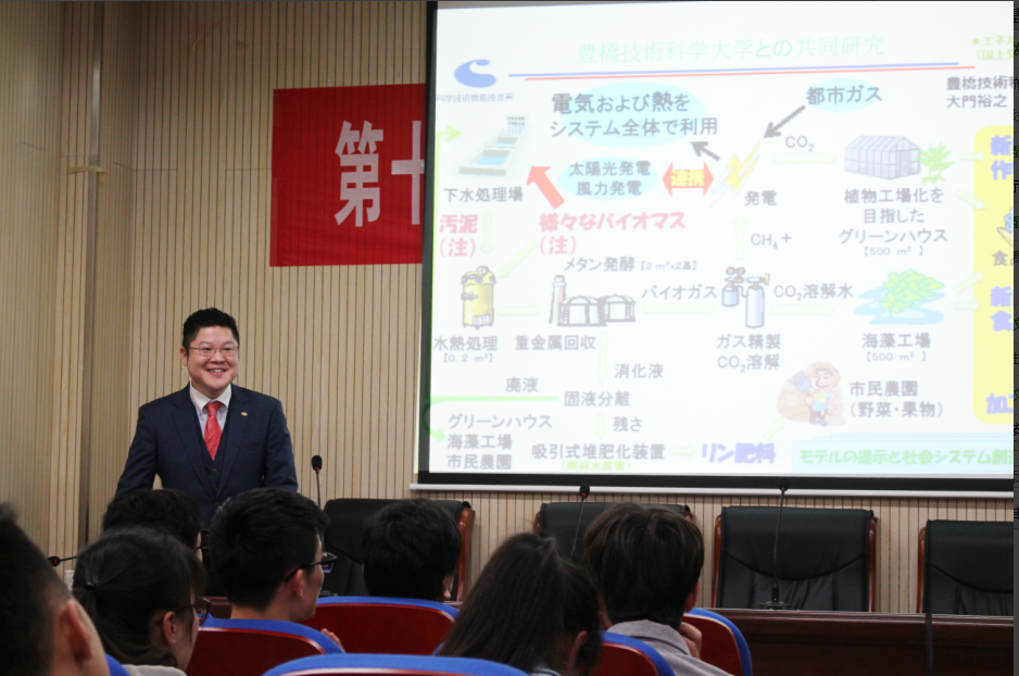 小岛孝信通过对日本近几年在垃圾处理、废物利用等环保领域的介绍,阐述了明辉环保株式会社在环保领域所取得的科研成果与企业效益,并着重从污水处理、废物发电等科研领域讲述现阶段日本企业所采用的技术。其次,小岛孝信讲述明辉环保株式会社利用垃圾制取农业肥料等在农业领域所取得的成果。最后,小岛孝信分享了日本企业、科研团队在工业废渣、废水方面的处理技术,并与现场师生进行了深入交流与探讨,现场气氛活跃,与会师生表示受益匪浅。