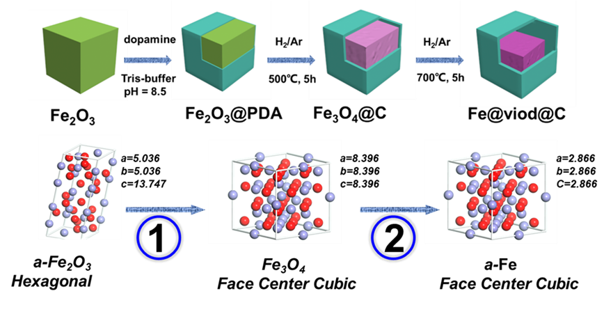 该研究以a-Fe2O3@PDA为前驱体,通过控制还原过程,煅烧后制备了Fe3O4@C和Fe@viod@C复合材料。研究表明:控制还原过程对复合材料的组成、结构与形貌有显著影响;获得的复合材料具有质量轻、厚度薄、吸收能力强、有效吸收频带宽等特点。因此,该材料在电磁污染防护领域具有较好的应用前景。本研究成果对控制还原过程调控吸波材料电磁参数和电磁波吸收性能具有一定的参考价值。
