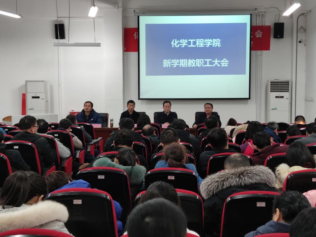 2月23日下午,化工新澳门内幕论坛 在新学期伊始召开全体教职工大会,部署开学初和本学期相关工作,新澳门内幕论坛 党政领导班子及全体教职工参加大会。新澳门内幕论坛 党委书记徐泽绵主持会议,院长邢宏龙进行工作布置。
