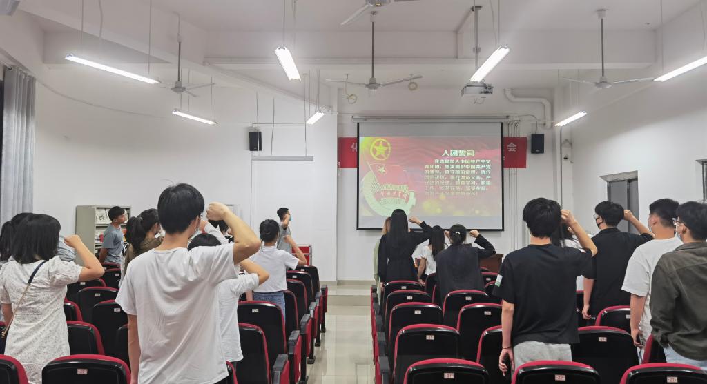 5月4日中午,化工新澳门内幕论坛 组织今年新入团同学和部分团员代表在崇礼楼102报告厅进行入团宣誓。“我志愿加入中国共产主义青年团,坚决拥护中国共产党的领导,遵守团的章程,执行团的决议,履行团员义务,严守团的纪律,勤奋学习,积极工作,吃苦在前,享受在后,为共产主义事业而奋斗。”团员青年面向团旗,紧握右拳,郑重宣誓,在庄严肃穆的仪式中再一次坚定初心,坚守信仰,引导着团员青年不忘誓言,不辱使命,永葆先进。化工20-2班团员张逸菲讲述了自己加入共青团的体会和成长经历,她说:“我立志做一名优秀的共青团员,努力学习,做全面发展的大学生,以优异的成绩回报老师、回报学校、回报祖国。”
