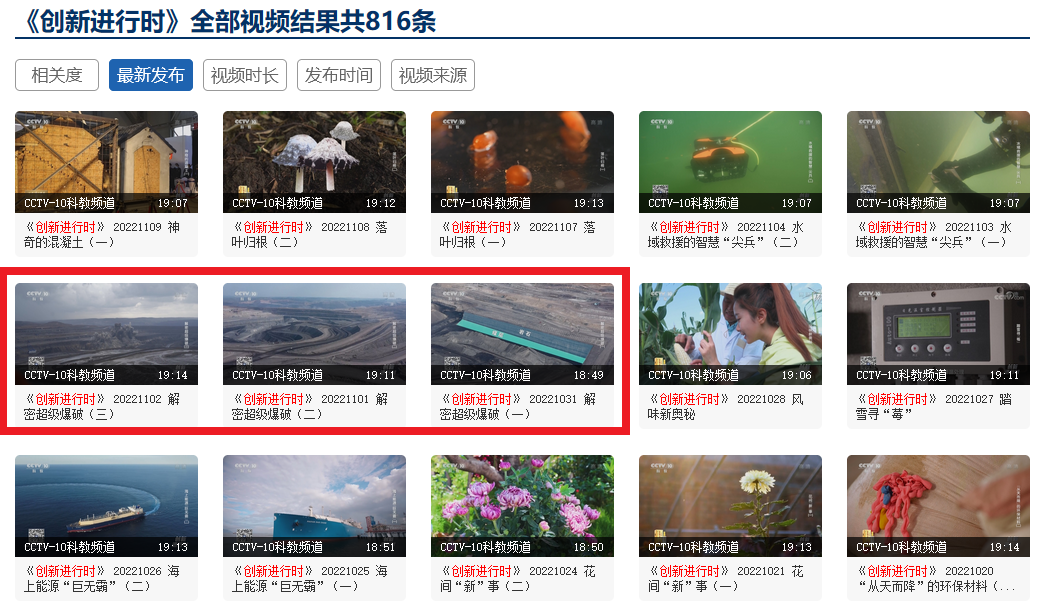 近日,央视科教频道《创新进行时》栏目以《解密超级爆破》为题连续三集报道了国家能源准能集团创新工程——由我校弹药工程与爆炸技术专业校友陈需、李玉清、校友陈浩等人负责的创新工程事迹。该事迹同时得到了民爆行业信息平台、中国煤炭报等媒体的进一步报道以及校内师生的关注和转发。