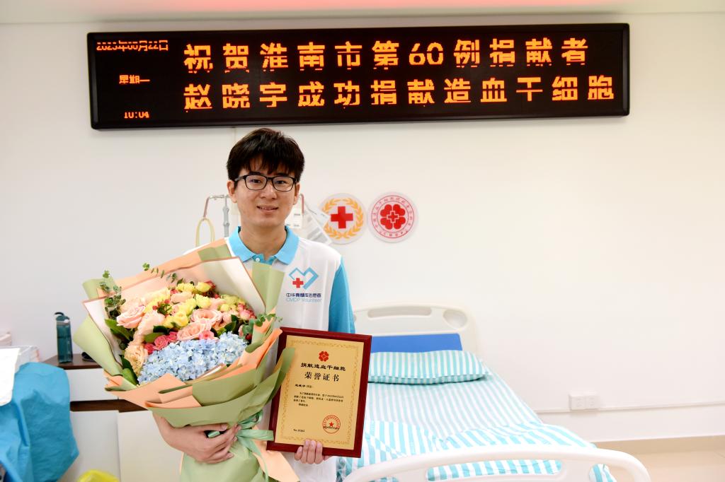 赵晓宇的捐献故事是源于在学校开展的无偿献血活动。2019年10月,刚进入大学校园的赵晓宇正赶上自己19岁的生日,时逢淮南市红十字会在学校开展“庆祖国七十华诞 献血进高校”活动,赵晓宇看到献血车和排队献血的同学们,眼前一亮,毫不犹豫上前献血。在听完志愿者介绍后,又多留了十毫升血样到中华骨髓库。当时,他就想,这不仅体验了人生中的第一次献血,还留下了一份生命的希望,这些都是送给自己最好的生日礼物。