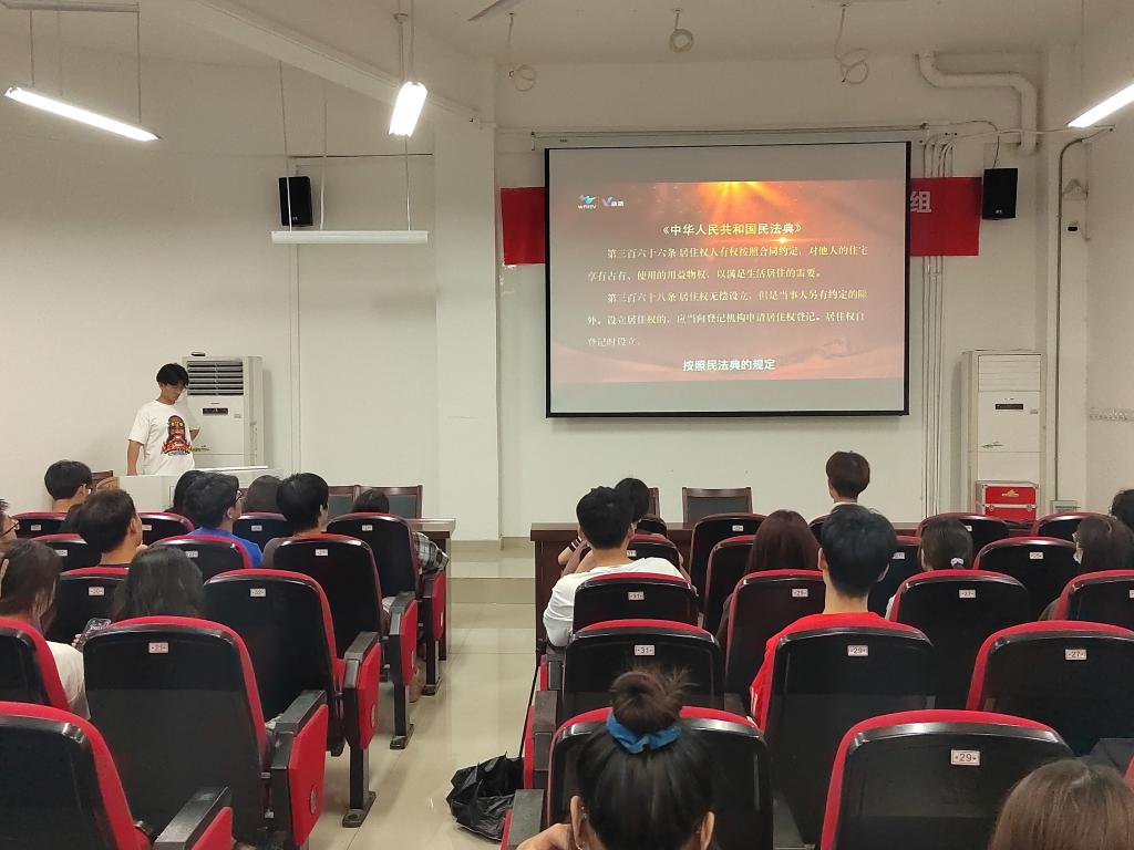 5月18日晚,化工新澳门内幕论坛 在新澳门内幕论坛 东102教室举行“美好生活·民法典相伴”主题宣讲会,学生会综合服务部部长谢许诺主持宣讲会,新澳门内幕论坛 团委书记杨志华参与指导。会议主要由《民法典》简介、播放《民法典》宣传片和具体案例分析三部分组成,同学们积极讨论、踊跃发言,通过案例分析进一步加深大家对《民法典》内容的认识与理解,大家纷纷表示《民法典》对我们的日常生活的行为规范起着重要的作用。本次活动增强了同学们的法律意识和责任感,激发了大家学法、懂法、守法的热情,进一步夯实了法治校园建设工作,为创建平安、和谐、文明校园奠定了坚实的法治基础。