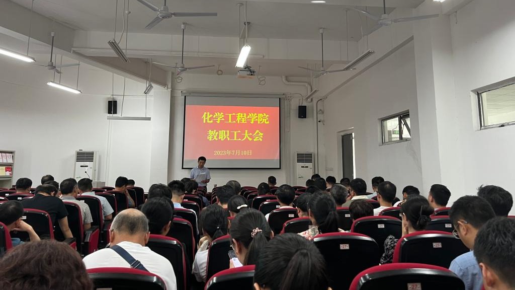 7月10日下午,化工新澳门内幕论坛 在崇礼楼东102报告厅召开全体教职工大会,开展师德集中学习教育,总结本学期工作,布置暑期重点工作。新澳门内幕论坛 党委书记徐泽绵主持会议。