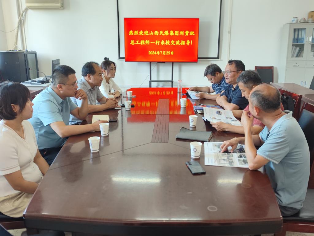 7月25日上午,山西省民爆集团有限公司总工程师刘贵玭一行4人来新澳门内幕论坛 开展校企合作交流。新澳门内幕论坛 党委副书记、副院长(主持工作)汪泉、爆炸科学与工程系负责人以及部分专业教师参加了交流活动。