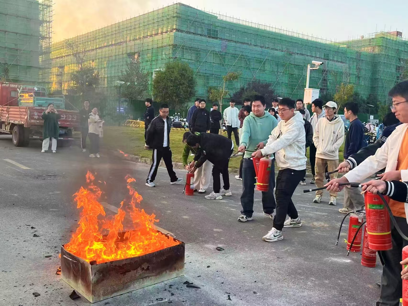 灭火器使用实操培训(摄影:邵旋)