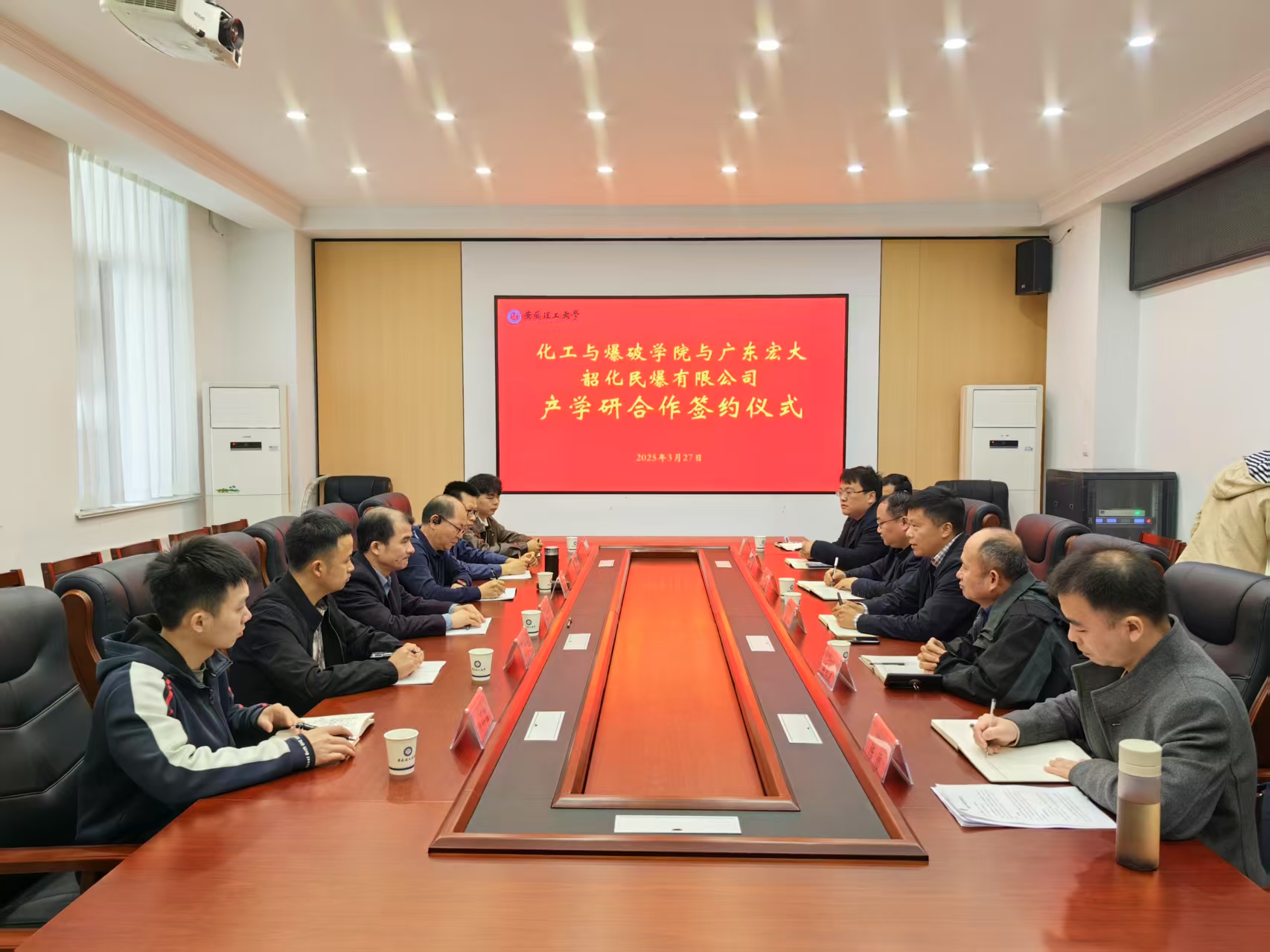 交流会后,双方签署了产学研合作协议,并围绕新型工业炸药产业化项目实施过程中的关键技术问题及环节进行了深入的交流和探讨。