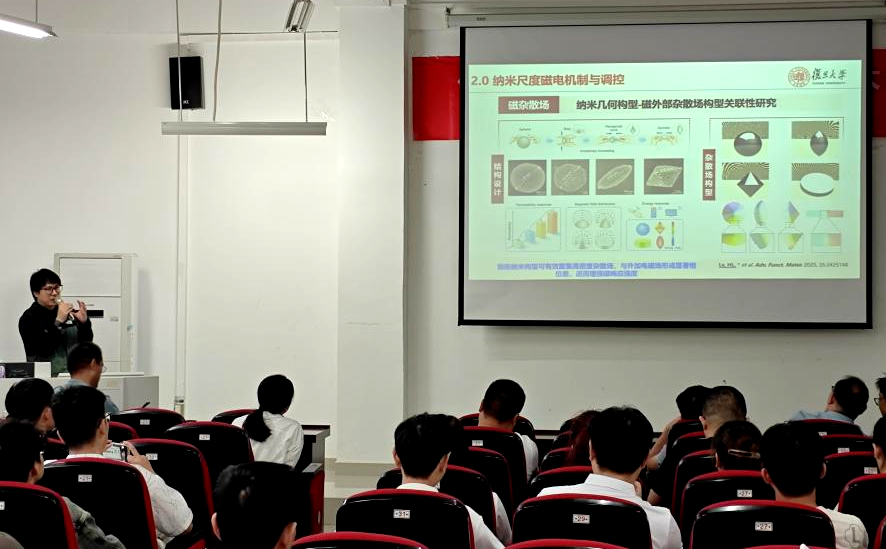 吕华良研究员从微观响应机制、动态调控方法及电磁功能集成等方面系统阐述了高频纳米尺度电磁功能材料及器件的前沿动态。他指出,深入理解电磁波与物质的相互作用机制,对于新型材料与高频器件的开发、以及应对复杂电磁环境挑战具有重要意义。探索组分-结构-性能关系,优化磁电双耦合损耗机制,是突破现有材料电磁性能瓶颈的关键途径。互动环节,吕华良研究员围绕电磁能量转化效率、电磁损耗机制、微结构设计新策略等问题同与会师生进行了深入交流,并对电磁功能材料拓宽吸波频带的相关研究提供了重要指导。