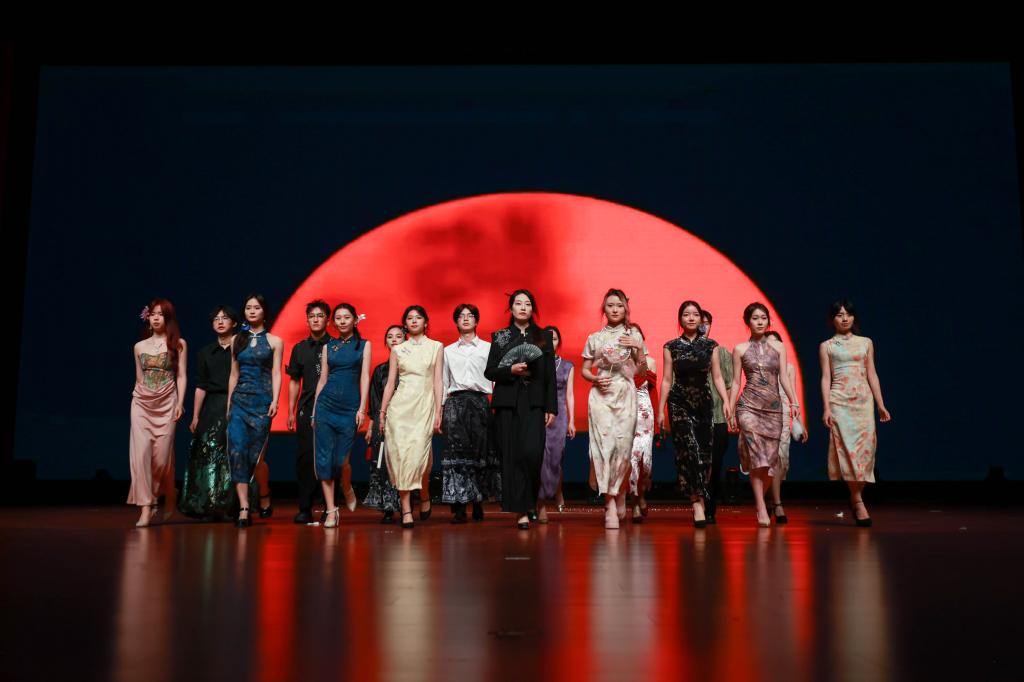 街舞《淮水潮涌》以力与美的碰撞,演绎现代潮流与淮楚文化的碰撞;情景剧《错位时空》通过跨越百年前的时空,再现青年学子为国家民族奋勇担当的伟岸身影;教师代表黄晟献唱《我渴望遇见你》,用歌声传递师者深情,引发全场共鸣。武术《武韵风华》、华服秀《旗韵华章》等节目彰显传统与现代艺术的水乳交融。舞蹈《校园时光》展现了建校八十载的风雨变迁和未来展望。《霓裳鱼梦》带领大家领略非遗文化的魅力与底蕴。