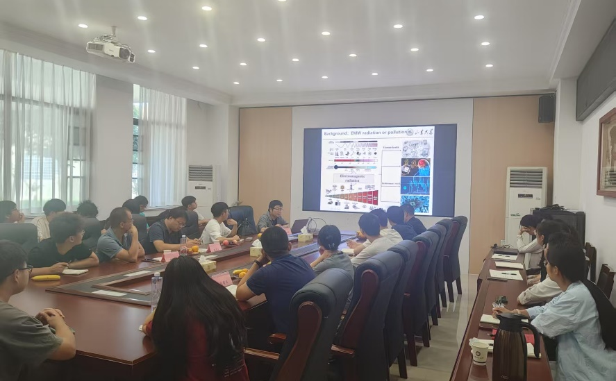曾志辉教授围绕纳米复合材料的组分设计、微观结构调控及电磁屏蔽/微波吸收性能优化等方面,系统讲解了该领域的最新研究动态。他指出,通过从材料组分和结构优化设计到多功能集成应用的逐步深入,这些研究不仅为轻质高性能纳米复合电磁防护材料的研制提供了理论与实践指导,还为环境电磁污染防治等领域的提升奠定了坚实基础。互动环节中,曾志辉教授就纳米颗粒分散性优化、多级结构设计策略、柔性基底兼容技术等问题与师生展开深入讨论,并针对如何平衡材料轻量化与高性能的矛盾提供了建设性思路。