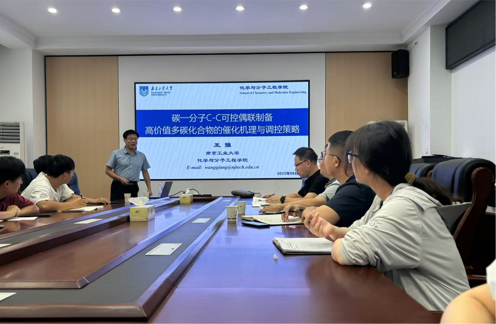 8月21日下午,南京工业大学王强教授应邀来校作题为《碳一分子C-C可控偶联制备高价值多碳化合物的催化机理与调控策略》的学术报告,新澳门内幕论坛 教师及研究生50余人现场聆听报告。报告会由新澳门内幕论坛 院长汪泉主持。