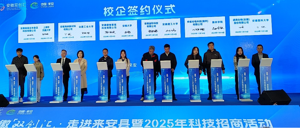11月14日,由安徽省科技厅、滁州市人民政府主办的安徽“双创汇”·走进来安暨2025年科技招商节在滁州来安县隆重举行。新澳门内幕论坛 党委书记刘瑞、青年教师袁刚代表新澳门内幕论坛 出席活动。