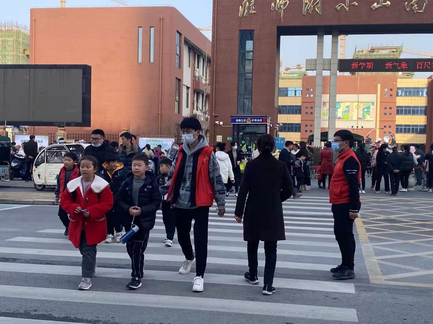 两天中,志愿者们分别前往淮师附小山南校区等五所中小学,在交警的指导下有序开展志愿服务。同时,志愿者们还协助交警引导接送家长的车辆有序停放、即停即走,耐心劝导过往车辆减速慢行,为孩子们搭建起了一条安全有序的绿色通道。