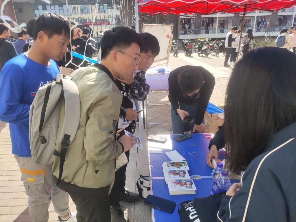 活动于义苑、爱苑食堂门口举行,为力求吸引更多同学参与其中,交流心声,畅谈感悟,相关线上宣传工作也同步开展。参与者在工作人员的引导下选择心仪的明信片,精心写下祝福寄语、未来展望、联系方式等,工作人员逐一审核明信片内容,筛选出优秀明信片并寄出。