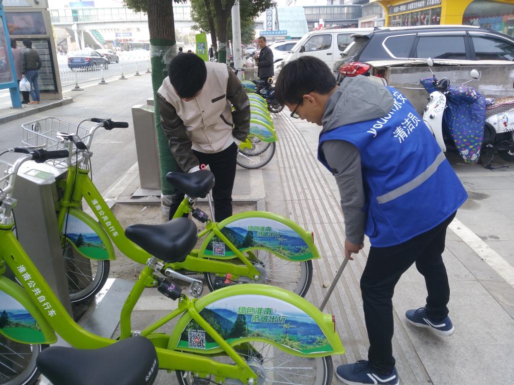 由于公共自行车的发展普及,淮南“小绿”已经成为了大众青睐的交通工具。为了让人们能够骑到干净舒适的公共自行车,弹药15-4班的同学们义务为公众们更换及清洗自行车。活动中,弹药15-4班全体同学进行了雷锋月启动仪式,班委为志愿者们讲解了必要的安全知识,公共自行车负责人为大家分配了具体的志愿工作。在志愿工作中,同学们都秉承着“服务大家既是服务自己”的观念,以认真、踏实的态度对待每一项服务工作,期间也为市民讲解绿色出行的现实意义。活动也得到了社会各界的广泛关注,市民们也纷纷向志愿者们竖起了大拇指!