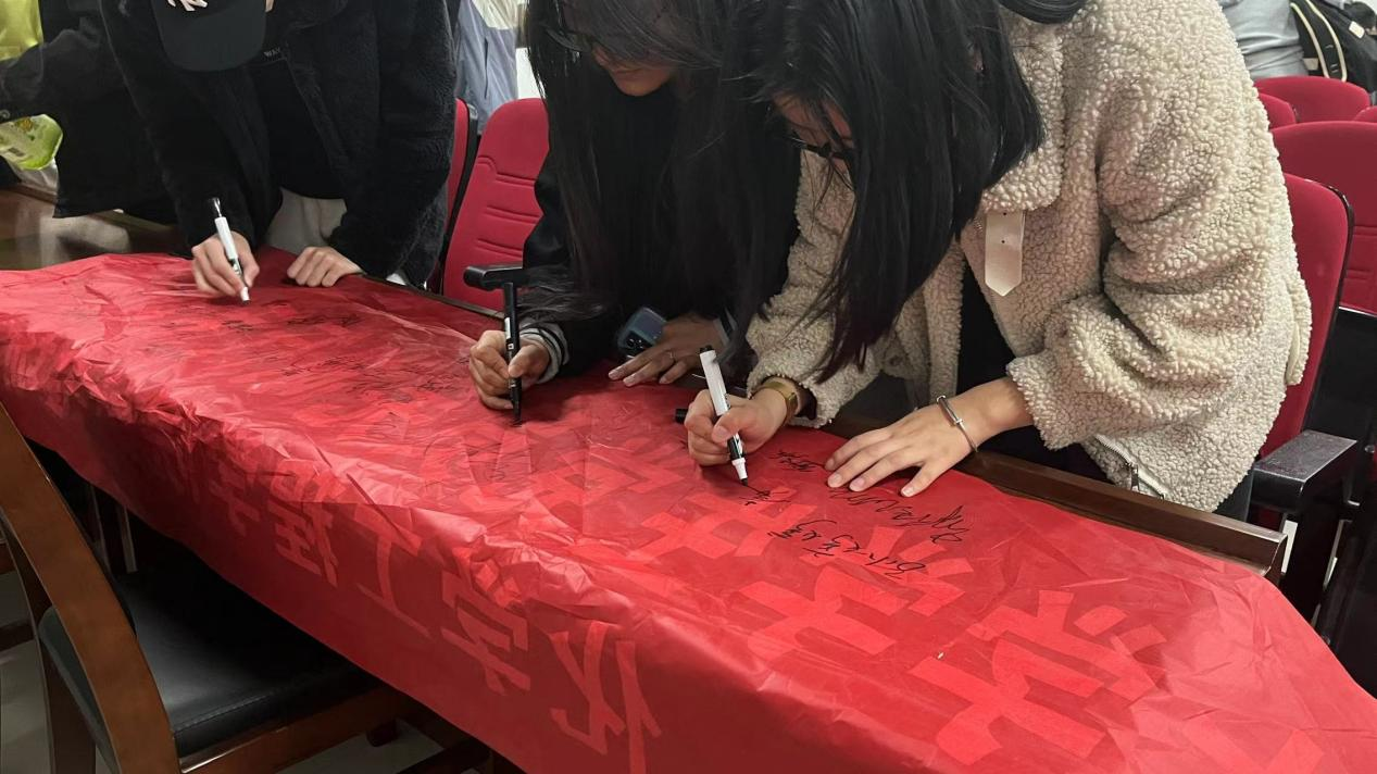 同日,应用化学22级1班开展了“3.5雷锋日”宣传活动,通过观看雷锋故事,讲述雷锋事迹的形式让同学们对雷锋精神有了进一步的认识。活动最后,大家纷纷在横幅上签上了自己的姓名来表达自愿做一个认真负责志愿者的决心。