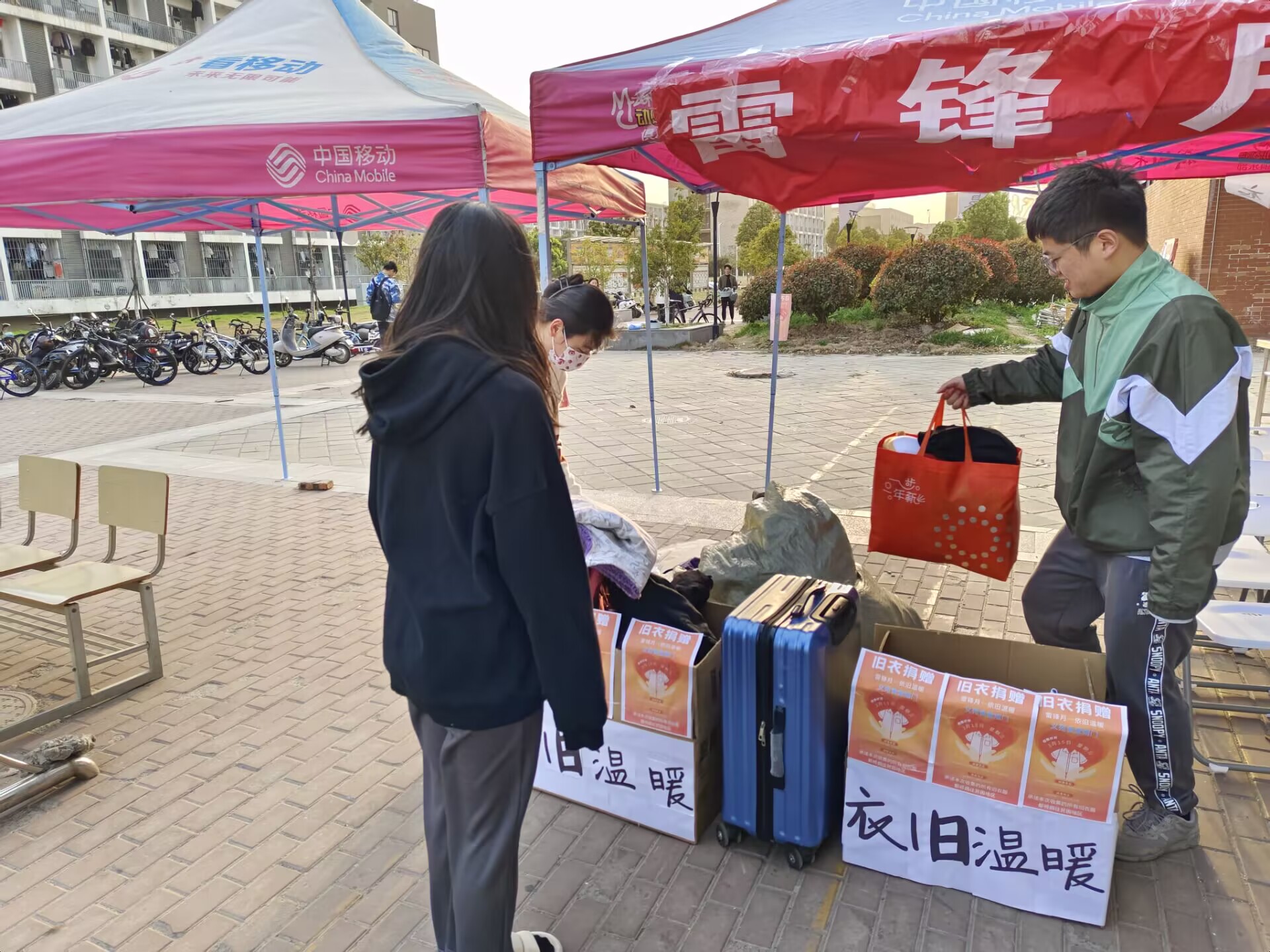 3月15日,志愿者们在义苑食堂门口开展“雷锋月-衣旧温暖”旧衣捐赠活动。三月虽已是万物复苏,暖阳高照,但贫苦山区的孩子却依旧因寒冷在教室中蜷缩取暖。仰望雷锋,更要走进雷锋;收获感动,更要付诸行动。活动开始前志愿者们以身作则,纷纷捐出自己的旧衣服。其他同学们也热心打包好衣服,贡献一份小小的爱心。