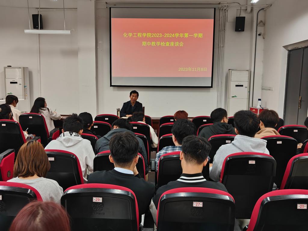 11月8日下午,化工新澳门内幕论坛 在“一站式”学生社区召开期中教学检查座谈会,新澳门内幕论坛 党委书记徐泽绵,2021及、2023级班级学生代表、全体辅导员40余人参加会议。
