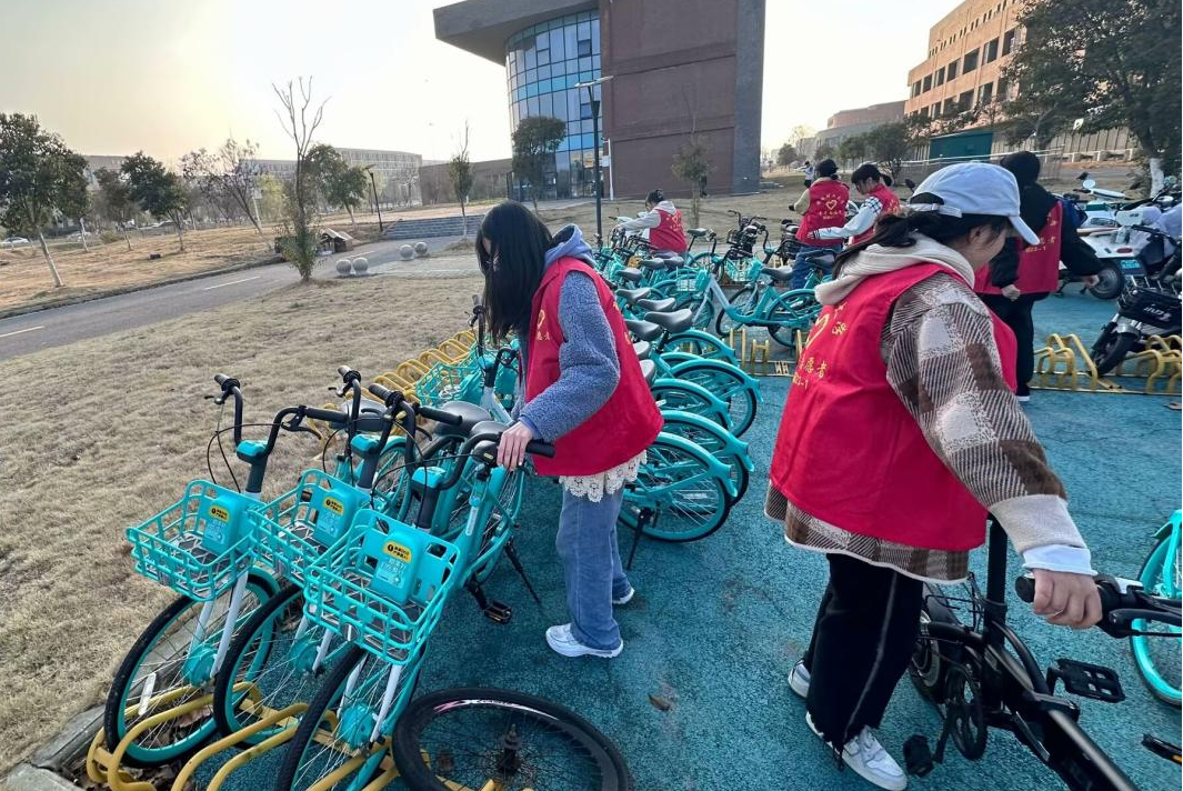 活动过程中,同学们身穿红色志愿者马甲,手持垃圾袋和拾捡工具,穿梭于新澳门内幕论坛 周边的绿荫小道和花丛之中,细心地捡起每一片垃圾。此外,他们还对无序停放的共享单车进行了整理,他们轻轻扶起倾倒的车辆,一辆接一辆地排列整齐。 活动现场,同学们热情高涨,干劲十足。