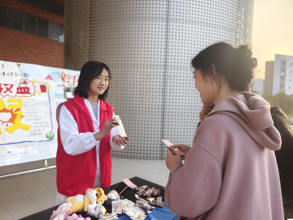弹药23级5班团支部在学校义苑食堂门口开展消费者权益知识竞答活动,旨在通过趣味活动的形式,提高广大师生对自身消费权益的重视和相关法律法规的普及。