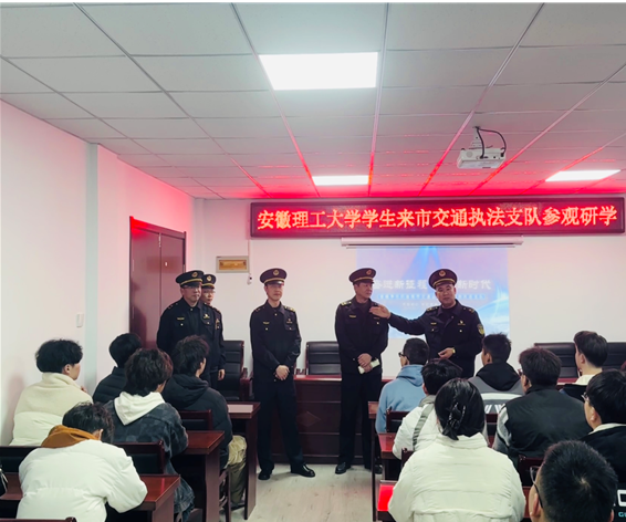 为学习贯彻习近平总书记关于深入开展学雷锋活动的重要指示精神,传承和弘扬雷锋精神,在“雷锋月”,弹药工程与爆炸技术专业22-7班团支部来到淮南市交通运输综合行政执法队参观研学,并实地听取安全知识讲解,开展体验执法等活动。