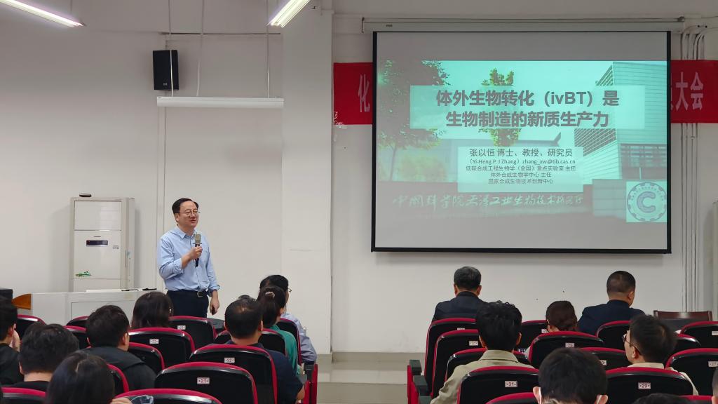 10月11日上午,中科院天津工业生物技术研究所张以恒教授应邀在新澳门六合彩内部资料 “一站式”学生社区作了题为《体外生物转化(ivBT)是生物制造的新质生产力》的学术报告。报告会由新澳门内幕论坛 副院长汪泉(主持工作)主持,新澳门内幕论坛 相关专业教师及研究生50余人参加了此次会议。