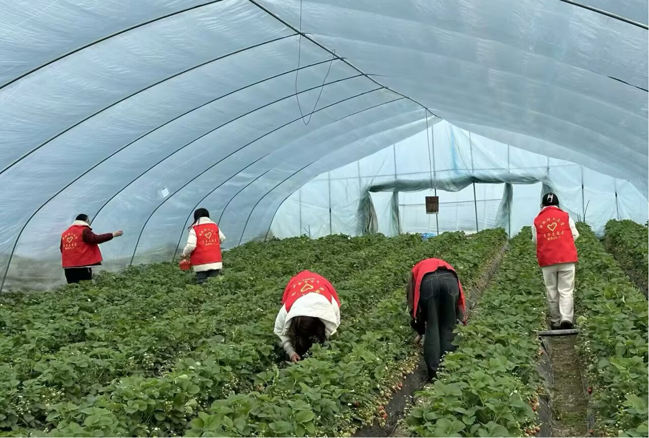 清晨,阳光洒满大地,同学们身着醒目的志愿服务马甲,满怀激情地集合于草莓种植基地。在基地负责人的耐心讲解与示范下,他们迅速熟悉了采摘流程和注意事项,随即化身为一支充满活力的“助农小分队”。在生机勃勃的草莓垄间,同学们以细致入微的态度,精心挑选每一颗饱满成熟的草莓,轻巧地将它们放入篮筐。他们还时刻留意着草莓的生长细节,积极向农户反馈观察到的信息,为提升采摘效率与质量提供宝贵的建议。