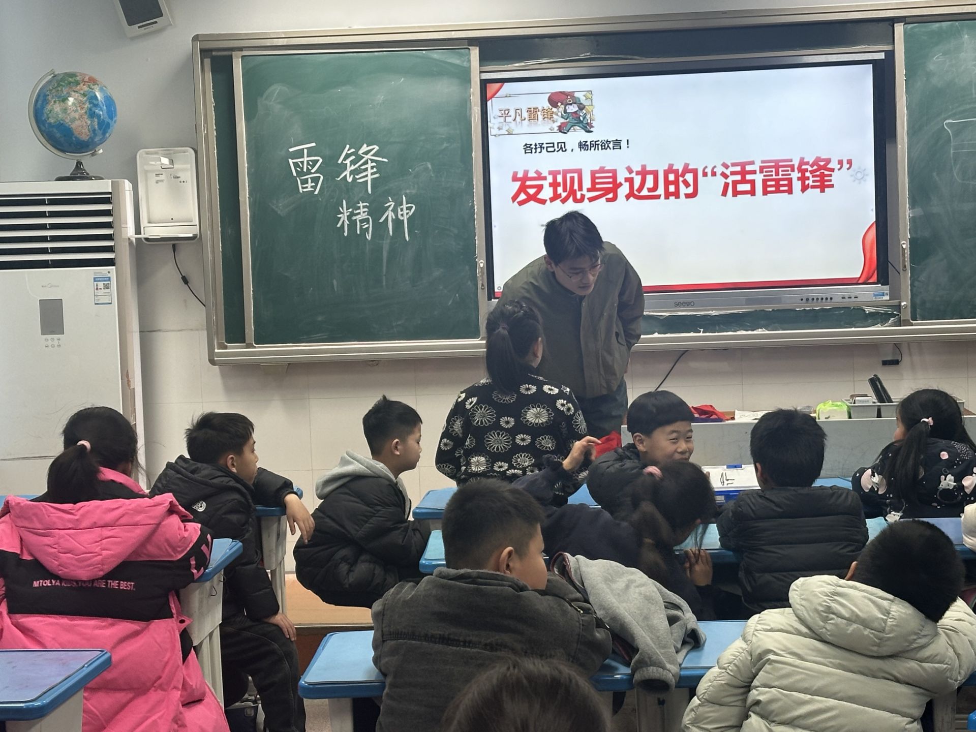 “雷锋叔叔为什么总愿意帮助别人?”“我们也能成为小雷锋吗?”宣讲现场,大学生以问题为引,通过“你问我答”“故事接龙”等环节,鼓励小学生畅谈对雷锋精神的理解。孩子们争相分享“高年级学生借我红领巾”“帮老师打扫卫生”等生活小事,稚嫩童声传递真挚感悟。活动尾声,大家一起学唱了《学习雷锋好榜样》,铿锵旋律中,雷锋精神如春雨般浸润童心。