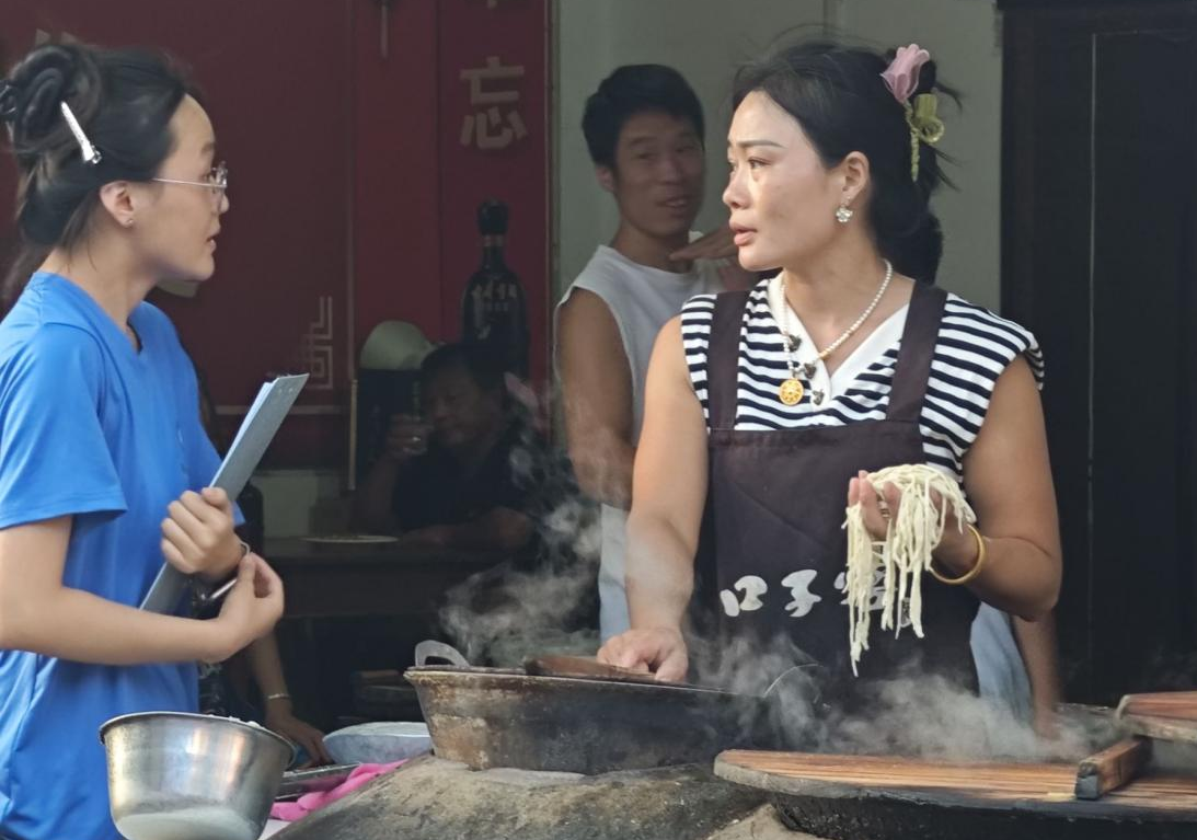 炉桥鸡丝面店始于清末,历经百年传承。团队抵达百年老店后,即刻展开深入调研:从淀粉添加比例到土鸡熬汤火候,成员逐项记录工艺细节,与店主探讨现代餐饮模式对传统手艺的影响,并收集近百年来的经营史料,力求完整还原这一非遗美食的传承脉络,深切体会到百年老店承载的不仅是味道,更是世代坚守的匠心工艺。