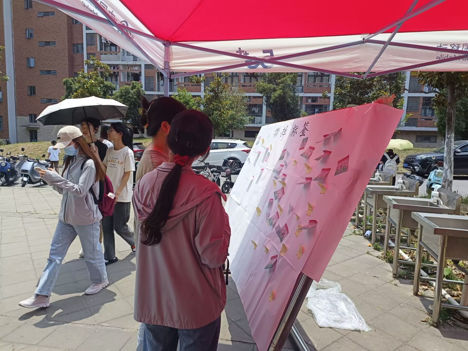 撕下标签,书写未来。撕下展板上刻板消极的标签,亲笔写上自己所期待的未来,一笔一画,自信又昂扬。在活动过程中,撕下的标签,告诉大家标签是用来撕掉的,我们应该拒绝焦虑,做不被定义的自己;书写的标签,告诉大家要勇敢去实现自己的梦想。同学们在现场积极地讨论自己所向往的未来,在标签上写下自己的理想,呈现出新时代青年的自信。