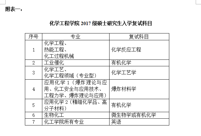 各专业考试科目详见附表一。