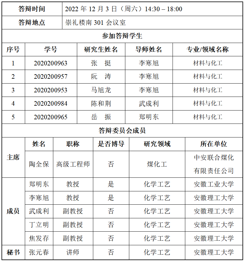 硕士研究生学位论文答辩公告(二)