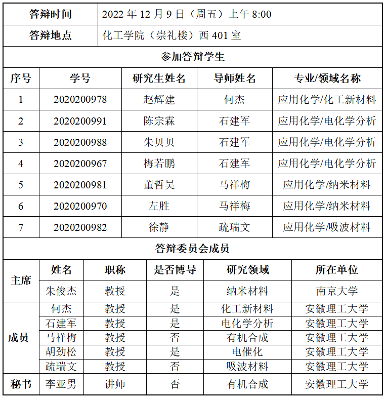 硕士研究生学位论文答辩公告(七)